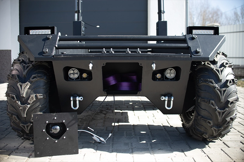 The UGV has three independent lighting circuits - infrared headlights (for operation via NVD), LED headlights (main light) and fog lights (for appropriate weather conditions).